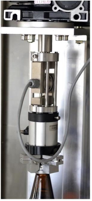 Su diseño destaca por su bastidor de acero inoxidable, mandril adaptable según el tipo de envase (bebidas, cosmético o farmacéutico) y sistema multiformato para botellas y preformas. Además, cuenta con regulación automática de altura, selector de ciclos rápido, y opciones de personalización de pantalla y ciclos de prueba. Todo esto garantiza operaciones seguras, eficientes y reproducibles, cumpliendo con la normativa FDA CFR 21-11 y entregándose con certificado de calibración COFRAC.